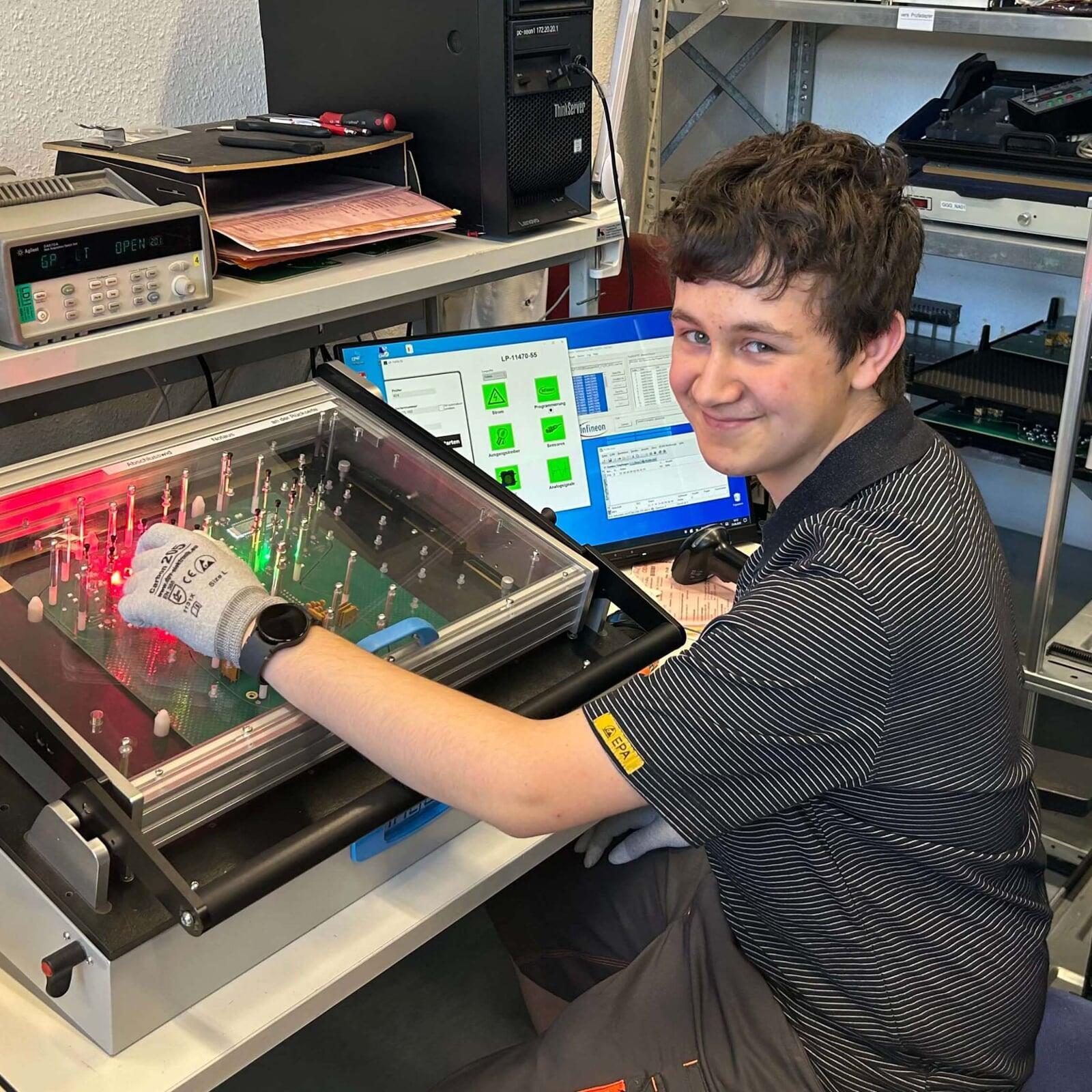 Bei GEMAC arbeitest du an modernen Arbeitsplätzen mit aktueller Technik – egal ob in der Entwicklung, Fertigung oder im Büro. Du wirst von Anfang an ins Team integriert, arbeitest praxisnah an echten Projekten und hast jederzeit erfahrene Fachleute an deiner Seite. Ein gutes Miteinander, kurze Wege und gegenseitige Unterstützung sorgen dafür, dass du dich schnell wohlfühlst und weiterentwickeln kannst.